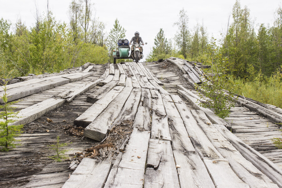 On the remote ‘Road of Bones,’ the five are on their own, but after a few risky river crossings, they can't go any further. The road simply dissolves in the middle of a busted wooden bridge, so there is no way of getting the motorcycles to the ground from a height of a good five meters without outside help. What's more, their supplies are running out. They have to go and get help—on foot. According to the map, there should be a town nearby. So, they set off in that direction.